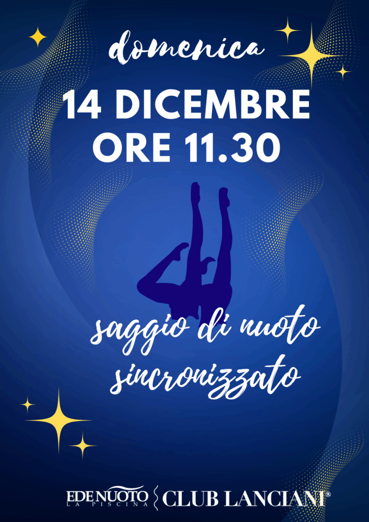 DOMENICA 14 DICEMBRE SAGGIO DI NUOTO SINCRONIZZATO Tutti i genitori sono invitati a partecipare.