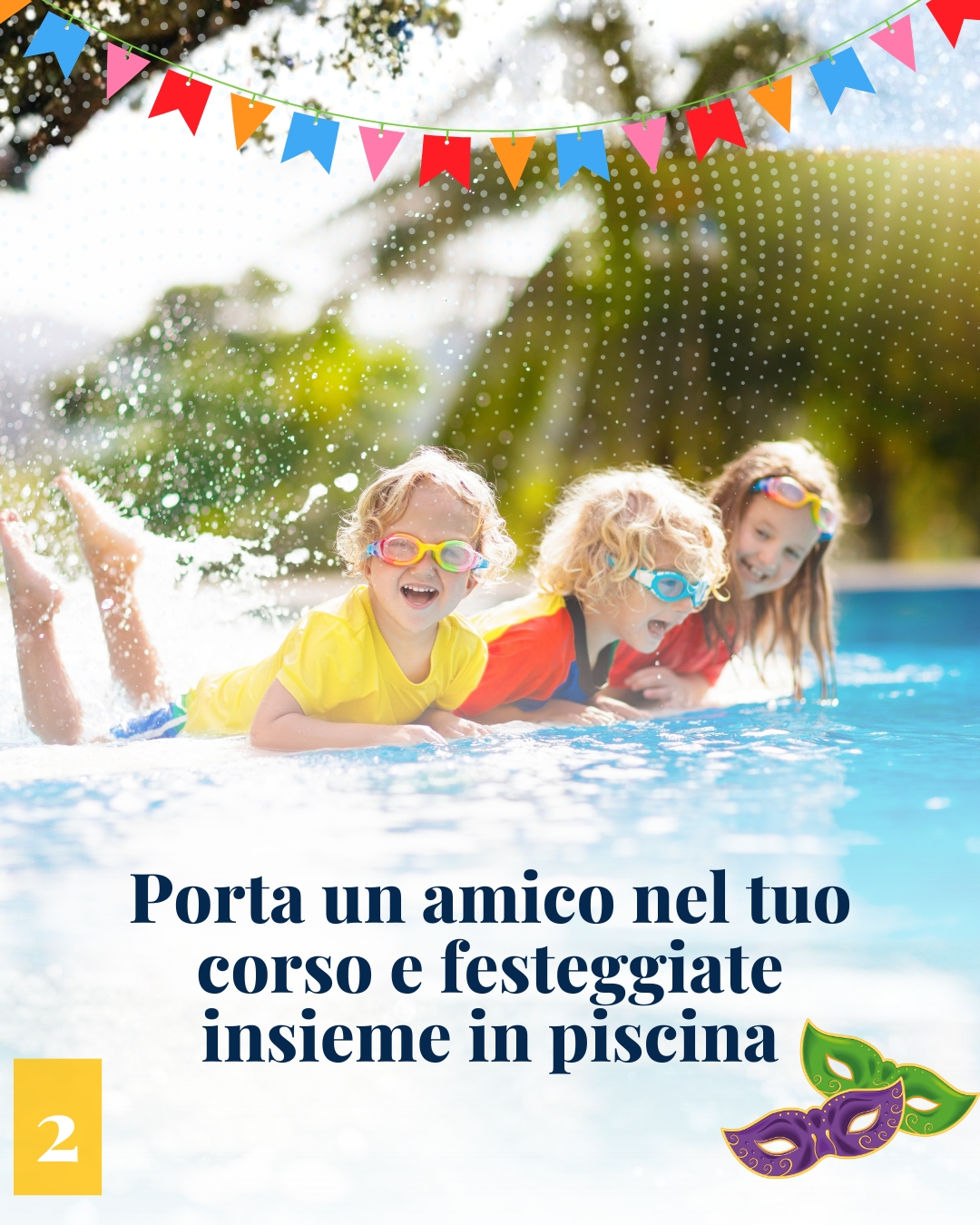 DAL 11 AL 17 FEBBRAIO – PORTA UN AMICO E FESTEGGIA IL CARNEVALE! Invita un amico a unirsi a te per celebrare il Carnevale insieme! Potrai ospitarlo nel tuo corso e condividere con lui un’esperienza unica. L’evento è aperto a tutti, grandi e piccini. Inoltre, i bambini riceveranno un gadget di Carnevale in omaggio. Prenotazione obbligatoria!